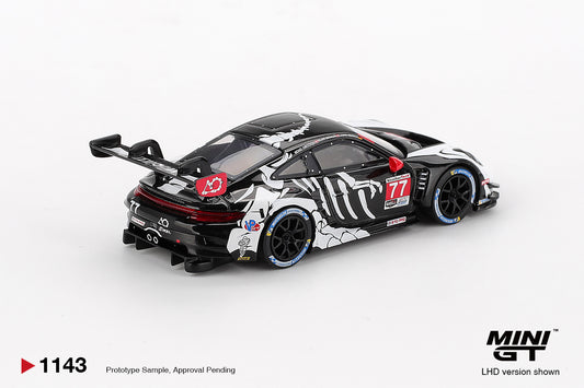Mini GT #1143 - Porsche 911 GT3 R #77 AO Racing 2025 IMSA Petit Le Mans, white/black/red | 1:64