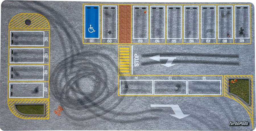 ✔️ Realistische Details – markierte Parkplätze, Drift-Linien & urbane Optik